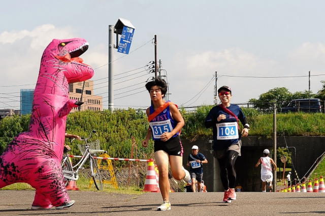 ランナーもさる事ながら「ティラノサウルス」の中は、さながらサウナ状態