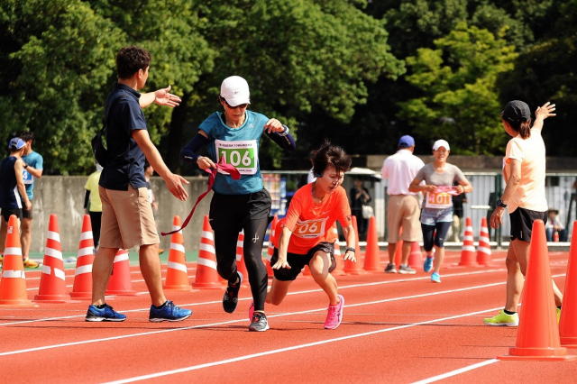 皆さん、いざ走り出すと競争心が沸くのでしょう、必死の表情で襷をリレーします。