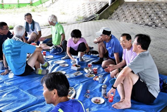 その後、大手大橋の下で「長岡雑走団」を交え慰労会を行いましたが、
