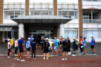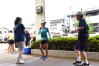 熱中症への注意喚起の後、軽い準備体操でスタートとなります。
