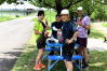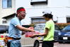 途中暑い中強風にあおられましたがゴールした後のスイカとむぎ茶のおもてなしは