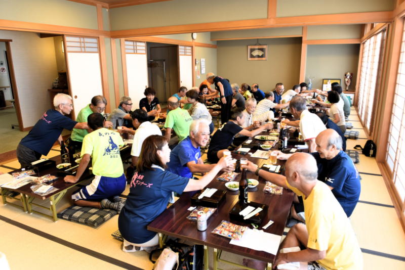 ゴールの後、お風呂で汗を流し会場を変えての交流会。
