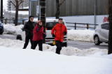 い面々と一緒に、歩道のほとんどが雪道で、ところどころ消雪によってグチャグチャして