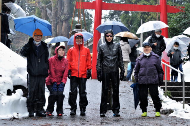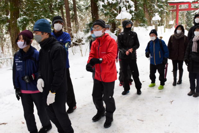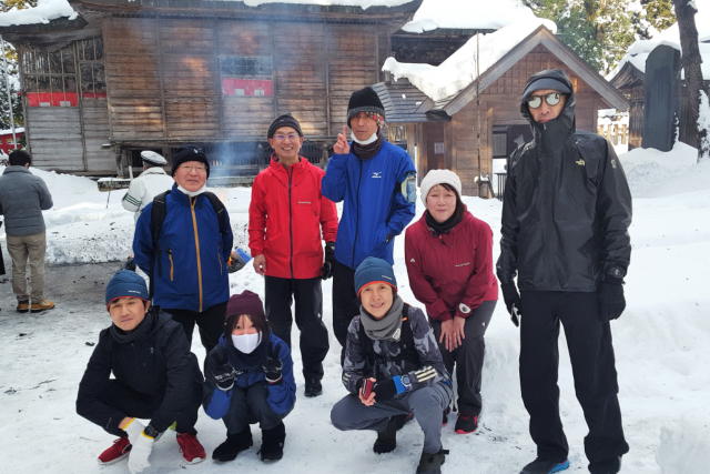 は9人、たまに青空が覗くお天気で雪にも降られずに蒼柴神社に到着することができました。