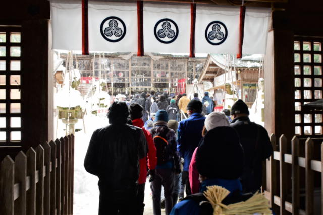参道には大勢の参拝者で行列ができています。参加者を増やそうと時間変更をしましたが、