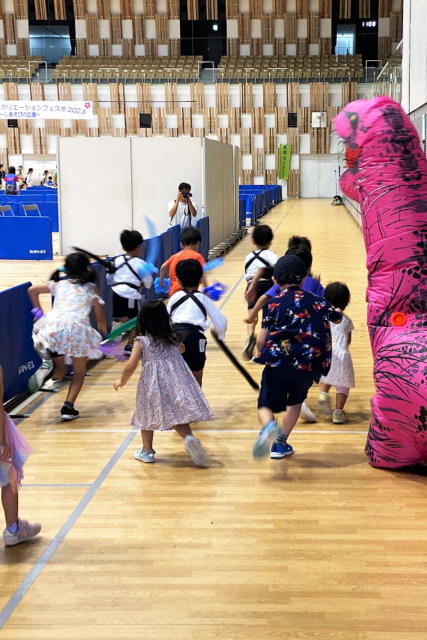 ティラノの視覚効果は絶大で、子どもからは大人気でした。