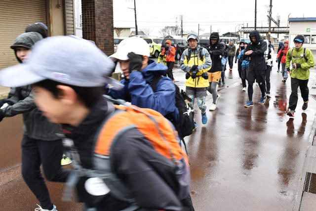 は少しの雨や雪など全く苦にしていません。みぞれ模様のなか元気良く笑顔でスタート