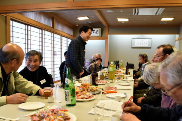 その後は会長と中島さんがセッティングしてくれたふれあいの里で、お風呂と食事を