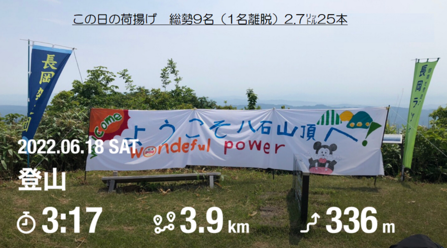 大会当日です。「長岡雑走団」の岡村キャプテンはこの日のために4回も山頂まで荷揚
